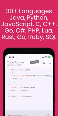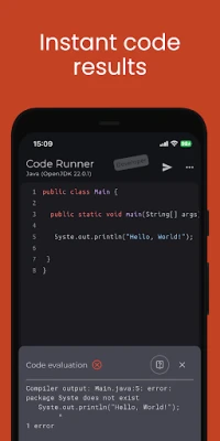 Uanset om du ønsker at eksperimentere med en ny algoritme, fejlfinde et komplekst problem eller fremvise dine seneste programmeringsprojekter, er Code Runner den ideelle løsning. Med blot et enkelt tryk kan du se din kodes output med det samme, og de fleksible input- og outputmuligheder lader dig teste dine idéer grundigt. Del dit arbejde med kolleger eller venner direkte fra appen og tag dine kodningsfærdigheder til nye højder. Code Runner er designet til at give dig frihed til at kode, når inspirationen rammer, og sikrer, at dit udviklermiljø altid er lige ved hånden.