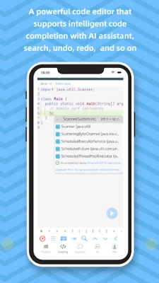 JavaCoders hjerte ligger i dets intelligente funktioner, der er skræddersyet til at gøre kodning smartere og hurtigere. Oplev glæden ved smart kodefuldførelse, der anticiperer dine behov, og automatisk formatering, der sikrer ren og læselig kode. Med syntaksfremhævelse bliver komplekse strukturer straks overskuelige, suppleret med nem adgang til standard API-dokumentation og et praktisk panel for almindelige tegn. En særlig styrke er den avancerede AI-assistent, der ikke blot intelligent kan generere kodestykker, men også aktivt hjælper med at korrigere fejl og besvare ethvert udviklingsspørgsmål, du måtte have, direkte i miljøet.