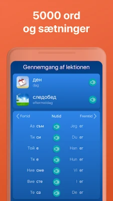 Oplev en læringsrejse, der er bygget omkring dig. Mondly fokuserer på relevante udtryk til virkelige situationer og organiserer dem i korte, overskuelige, tematiske lektioner. Fra krystalklare lydoptagelser af professionelle stemmeskuespillere til øjeblikkelig bøjning af verber med et enkelt tryk – hvert element er designet til at fremskynde din forståelse. Følg din fremgang med detaljeret statistik, udfordr venner på den globale rangliste, og nyd en læringsoplevelse, der løbende tilpasser sig din individuelle stil. Snart vil du uden besvær kunne anvende de 5000 mest essentielle bulgarske ord og vendinger, klar til at forbinde dig med verden.
