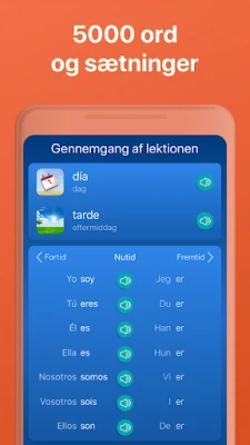 Mondly er mere end blot en app; det er et intelligent økosystem for sprogindlæring. Med funktioner som øjeblikkelig verbumskonjugation – hurtigere end en traditionel ordbog – og et systematisk bygget ordforråd baseret på nyttige udtryk, sikres en dybdegående forståelse. Følg din udvikling med detaljeret statistik, udfordr venner på den globale førerposition, og oplev en læringsrejse, der tilpasser sig netop dig. Mondly lærer din læringsstil at kende, skræddersyr indholdet og bliver din personlige, adaptive underviser, der guider dig sikkert mod at mestre de 5000 mest essentielle spanske ord og udtryk.