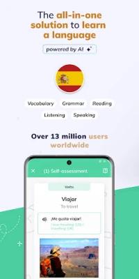 Har du en drøm om at mestre spansk uden kedelige kurser eller opslag i en ordbog? Over 13 millioner mennesker globalt har allerede opdaget MosaLinguas hemmelighed: at opnå konkrete sprogresultater på blot 10 minutter om dagen. MosaLingua revolutionerer din indlæringsproces, så du hurtigt kan kommunikere og forstå spansk, uanset om det er til rejser, arbejde eller hverdag. Glem traditionelle metoder og oplev en ny, effektiv måde at tilegne dig et nyt sprog på, der giver dig mulighed for at tale spansk med tillid.