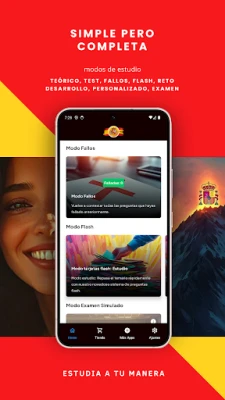 CCSE tilbyder en bred vifte af studiemetoder, der passer til enhver læringsstil. Dyk ned i 'Studiemode', hvor alt officielt CCSE-indhold er samlet, så du nemt kan gennemgå emner uden selv at skulle søge. Træn dine færdigheder med 'Øvelsesmode', der præsenterer testspørgsmål organiseret efter tema, ideelt til en struktureret progression. 'Fejlmode' fokuserer målrettet på de spørgsmål, du tidligere har svaret forkert på, hvilket styrker dine svageste punkter. For en hurtig og effektiv memorering tilbyder 'Flashmode' en dynamisk tilgang til at indprente dig den spanske forfatning, territorial organisation og kulturelle aspekter.