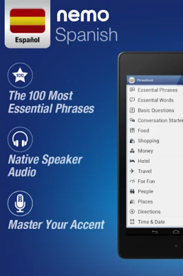 Nemo hjælper dig med hurtigt og selvsikkert at tale de mest brugbare ord på spansk. Få øjeblikkelig sprogfærdighed og opbyg din selvtillid til at kommunikere effektivt. Nemo er designet til sprogindlæring på Android-enheder.