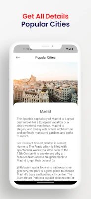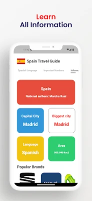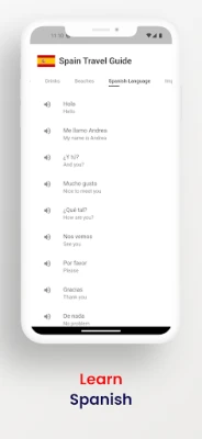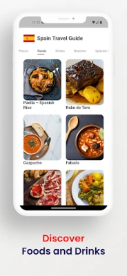 Med Spain Travel Guide får du adgang til en skattekiste af informationer, organiseret for din bekvemmelighed. Dyk ned i Spaniens mest eftertragtede byer som Madrids majestætiske boulevarder, Barcelonas kunstneriske puls, Sevillas historiske charme, Valencias moderne flair og Granadas Alhambra. Appen leder dig også til landets mest populære seværdigheder og de uimodståelige kulinariske højdepunkter; forestil dig at nyde en ægte Paella, Rabo de Toro, Gazpacho eller Fabada. Oplev de fineste strande som La Concha, Playa de Las Catedrales, Silence Beach og Ses Illetes, eller tag hul på grundlæggende spansk sprog for at berige dine lokale interaktioner.