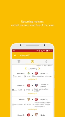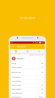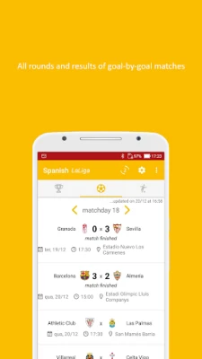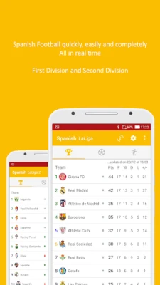 Dyk ned i de aktuelle stillinger med Spanish Football, der viser en detaljeret oversigt over første og anden division. Følg dit holds placering, antal spillede kampe, sejre, uafgjorte, nederlag og målforskel. Hver runde dækkes minutiøst med information om kampdage, starttider og naturligvis alle målene. Vælg dit favorithold, og modtag øjeblikkelige notifikationer ved mål, kampstart, pause og slutfløjt, så du forbliver tilsluttet, selv når du er væk fra skærmen.