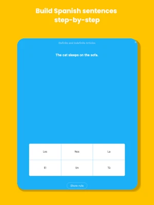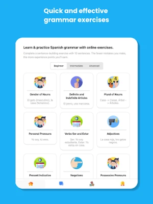 Espanido gør det sjovt og nemt at lære spansk grammatik. Med interaktive øvelser for alle niveauer – fra begynder til avanceret – kan du mestre spanske tider, verbumskonjugering og grammatikregler. Forbedr dit spansk på kun 10 minutter om dagen med Espanido!